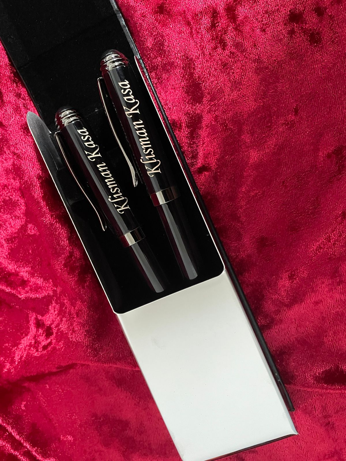 Seti përmban kutine dhe dy stilolapsa ne ngjyre zeze